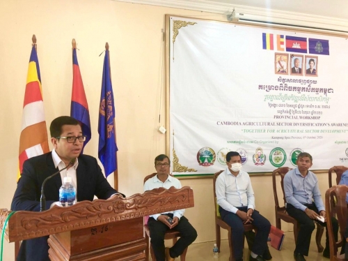 Kampong Speu, On Tuesday, October 6, 2020, the Cambodia Agricultural Sector Diversification Project (CASDP), funded by the World Bank and the Royal Government of Cambodia, organized its first provincial-level dissemination workshop at Provincial Department of Agriculture, Forestry and Fisheries of Kampong Speu, presided over by Dr. Sar Chetra, Deputy Secretary General of Ministry of Agriculture, Forestry, and Fisheries and Director of Cambodia Agricultural Sector Diversification Project and attended by HE Tith Vuthy, Deputy Governor of Kampong Speu province and Mr. Chheang Tola, Director of Department of Agriculture, Forestry, and Fisheries of Kampong Speu province. The workshop objectives include: