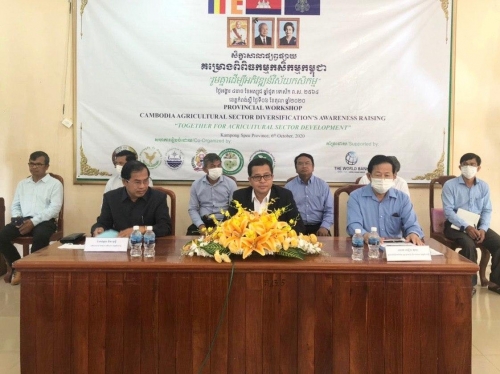 ខេត្តកំពង់ស្ពឺ, នាថ្ងៃអង្គារ ៤រោច ខែអស្សុជ ឆ្នាំជូត ទោស័ក ព.ស២៥៦៤ ត្រូវនឹងថ្ងៃទី៦ ខែតុលា ឆ្នាំ២០២០ នៅក្រោមគម្រោងពិពិធកម្មកសិកម្មកម្ពុជា បានរៀបចំសិក្ខាសាលាផ្សព្វផ្សាយលើកដំបូងនៅថ្នាក់ខេត្ត (មន្ទីរកសិកម្ម រុក្ខាប្រមាញ់ និងនេសាទ ខេត្តកំពង់ស្ពឺ) ក្រោមអធិបតី បណ្ឌិត សរ ចិត្រា អគ្គលេខាធិការរងនៃក្រសួងកសិកម្ម រុក្ខាប្រមាញ់ និងនេសាទ និងជានាយកគម្រោងពិពិធកម្មកសិកម្មកម្ពុជា ឯកឧត្តម ទិត វុទ្ធី អភិបាលរងខេត្តកំពង់ស្ពឺ និងលោក ឈៀង តុលា ប្រធានមន្ទីរកសិកម្ម រុក្ខាប្រមាញ់ នេសាទខេត្តកំពង់ស្ពឺ។ គោលបំណងនៃសិក្ខាសាលាដើម្បី៖