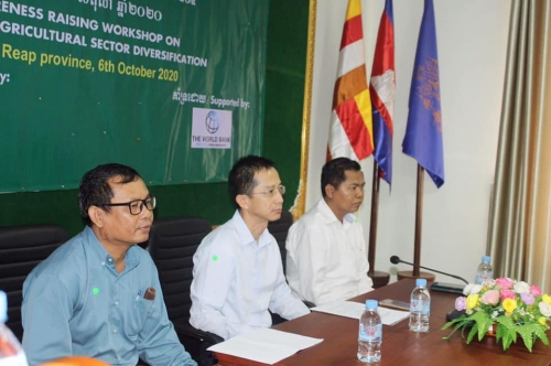 Siem Reap, On Tuesday, October 6, 2020, the Cambodia Agricultural Sector Diversification Project (CASDP), funded by the World Bank and the Royal Government of Cambodia, organized its first provincial-level dissemination workshop at Provincial Department of Agriculture, Forestry and Fisheries of Seim Reap, presided over by Mr. Hok Kimthourn, Manager of Cambodia Agricultural Sector Diversification Project and attended by Mr. Tea Kimsoth, Director of Seim Reap Provincial Department of Agriculture, Forestry, and Fisheries. The workshop objectives include: