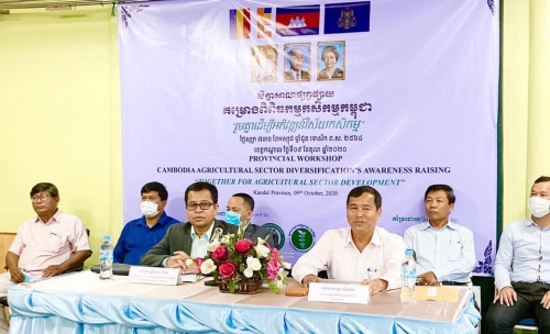 On Friday October 9th 2020, Kandal Province, the Cambodia Agricultural Sector Diversification Project (CASDP) organized its first provincial-level dissemination workshop at Provincial Department of Agriculture, Forestry and Fisheries of Kandal, presided over by Dr. Sar Chetra, Deputy Secretary General of Ministry of Agriculture, Forestry, and Fisheries and Director of Cambodia Agricultural Sector Diversification Project Diversification Project and attended by Mr.Buntuon Simona, Director of Kandal Provincial Department of Agriculture, Forestry, and Fisheries. The workshop objectives include:
