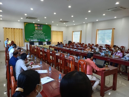 On Wednesday, October 7, 2020, the Cambodia Agricultural Sector Diversification Project (CASDP), funded by the World Bank and the Royal Government of Cambodia, organized its first provincial-level dissemination workshop at Provincial Department of Agriculture, Forestry and Fisheries of Steung Treng, presided over by Mr. Nob Sophoeun, Chief officer M&E of Ministry of Agriculture, Forestry, and Fisheries and M&E Team leader of Cambodia Agricultural Sector Diversification Project and attended by Mr. Noy Sophyrom Deputy Director of PDAFF of Steung Treng and Mr. Dy Sereyvireak, Small and Medium Agribusiness Officer, Ministry of Economy and Finance- CASDP's Implementation Unit, The workshop objectives include: (1) to disseminate project information among agricultural cooperatives, producer organizations, SME/SMA, farm product buyers/collectors, livestock farm owners, slaughterhouse owners, fish farm owners, local authorities and other stakeholders in the target areas; (2) to inform about the project’s financing support that includes grants to supplement investment capital as well as Matching Grant and loans from participating financial institutions (PFI) for Agriculture Cooperatives (ACs), Producer Organizations (POs) and their members; (3) to identify interested agricultural cooperatives, producer organizations, collectors, owners of SME/SMA, livestock farms, slaughterhouses, fish farms who may come with their proposals on agricultural diversification and business plans to get Matching Grant and loans from PFI; and (4) to disseminate information about environmental and social safeguards, and gender mainstreaming. This workshop was participated by representatives from the Ministry of Economy and Finance, the Ministry of Water Resources and Meteorology, the Ministry of Rural Development, the Provincial Department of Agriculture, Forestry and Fisheries of Steung Treng, agricultural cooperatives, producer organizations, farm product buyers/collectors, owners of SME/SMA, livestock farms, slaughterhouse and fish farm, local authorities, representatives from technical service providers (TSP-SBK) and colleagues from CASDP of the Ministry of Agriculture, Forestry and Fisheries.