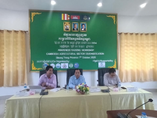 នាថ្ងៃពុធ ៥រោច ខែអស្សុជ ឆ្នាំជូត ទោស័ក ព.ស២៥៦៤ ត្រូវនឹងថ្ងៃទី៧ ខែតុលា ឆ្នាំ២០២០ នៅក្រោមគម្រោងពិពិធកម្មកសិកម្មកម្ពុជា បានរៀបចំសិក្ខាសាលាផ្សព្វផ្សាយលើកដំបូងនៅថ្នាក់ខេត្ត (មន្ទីរកសិកម្ម រុក្ខាប្រមាញ់ និងនេសាទ ខេត្តស្ទឹងត្រែង) ក្រោមអធិបតីលោក ណុប សុភឿន ប្រធានការិយាល័យត្រួតពិនិត្យ និងវាយតម្លៃគម្រោង នៃក្រសួងកសិកម្ម រុក្ខាប្រមាញ់ និងនេសាទ និងជាប្រធានក្រុមត្រួតពិនិត្យ និងវាយតម្លៃគម្រោង CASDP លោក ណយ សុភិរម្យ អនុប្រធានមន្ទីរកសិកម្ម រុក្ខាប្រមាញ់ និងនេសាទ ខេត្តស្ទឹងត្រែង និង លោក ឌី សេសីវីរៈ មន្ត្រីកសិពាណិជ្ជកម្មខ្នាត តូច និងមធ្យម នៃអង្គភាពអនុវត្តុគម្រោងពិពិធកម្មកសិកម្ម នៃក្រសួងសេដ្ឋកិច្ច និងហិរញ្ញវត្ថុ។ គោលបំណងនៃសិក្ខាសាលាដើម្បី៖ (១)ផ្សព្វផ្សាយព័ត៌មានគម្រោងទៅសហគមន៍កសិកម្ម