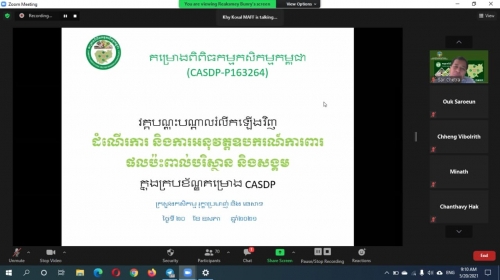 On May 20, 2021, the Cambodia Agricultural Sector Diversification Project (CASDP), funded by the World Bank and the Royal Government of Cambodia, organized refresher training (Via Zoom) on