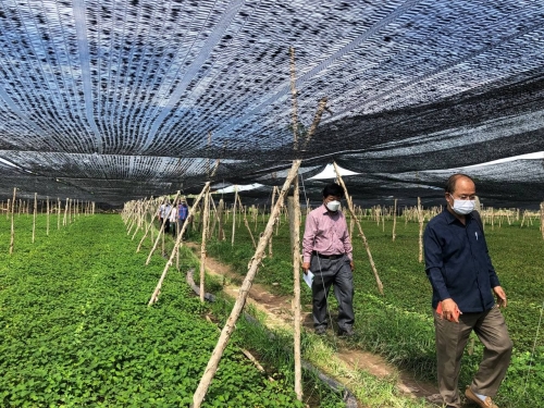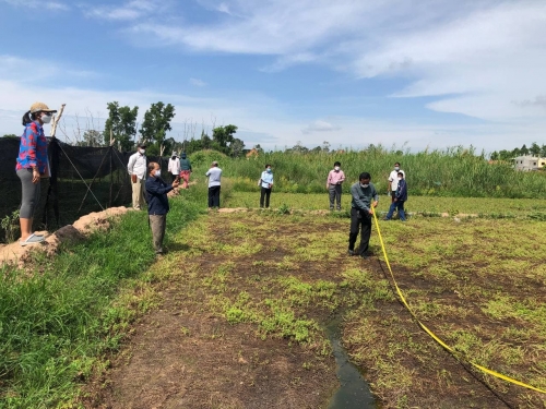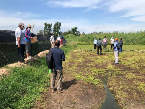 មន្ទីរកសិកម្ម រុក្ខាប្រមាញ់ និងនេសាទរាជធានីភ្នំពេញ៖ នាថ្ងៃច័ន្ទ ១២កើត ខែបឋមាសាឍ ឆ្នាំឆ្លូវ ត្រីស័ក ព.ស២៥៦៥ ត្រូវនឹងថ្ងៃទី២១ ខែមិថុនា ឆ្នាំ២០២១ នៅសង្កាត់ក្បាលកោះ ខណ្ឌច្បារអំពៅ រាជធានីភ្នំពេញ ក្រុមការងារនៃគម្រោងពិពិធកម្មកសិកម្មកម្ពុជានៃក្រសួងកសិកម្ម រុក្ខាប្រមាញ់ និងនេសាទ ដឹកនាំដោយលោក កើត កិត្តិនាថ អគ្គនាយករង នៃអគ្គនាយកដ្ឋានកសិកម្ម និងក្រោមកិច្ចសម្របសម្រួលដោយ លោក ហ៊ិន ប៉ិច អនុប្រធានមន្ទីរកសិកម្ម រុក្ខាប្រមាញ់ និងនេសាទរាជធានីភ្នំពេញ និងសហការីបានចុះធ្វើការត្រួតពិនិត្យ និងវាយតម្លៃបឋមលើផលប៉ះពាល់បរិស្ថាន និងសង្គម លើទីតាំងសាងសង់ផ្ទះសំណាញ់ ទ្រុងមាន់ និងការផ្តល់ធាតុចូលបន្លែ ក្រោមគម្រោងឆ្លើយតបសង្រ្គោះបន្ទាន់ (CERC) នៃគម្រោងពិពិធកម្មកសិកម្មកម្ពុជានៃក្រសួងកសិកម្ម រុក្ខាប្រមាញ់ និងនេសាទ។ ក្រុមបេសកកម្មមានសមាភាពចូលរួម៖លោកស្រី ប៊ុនរី រស្មី មន្ត្រីផ្នែកគាំពារបរិស្ថាន និងសង្គម កញ្ញា ឃុំ ស្រស់ មន្រ្តីរដ្ឋបាលជលផល លោក ប៊ុន ឡុង ប្រធានការិយាល័យនៃនាយកដ្ឋានបុគ្គលិក និងអភិវឌ្ឍន៍ធនធានមនុស្ស និងទីប្រឹក្សាគម្រោងពិពិធកម្មកសិកម្មកម្ពុជា។ ក្រោយពីក្រុមបេសកកម្មបានជួបប្រជុំពិភាក្សា និងបានជម្រាបជូនពីគោលបំណងជាមួយក្រុមអ្នកទទួលផលពីគម្រោងCERC និងបានបន្តដំណើរចុះពិនិត្យទីតាំងជាក់ស្តែងដែលមានសក្តានុពលក្នុងភូមិព្រែកធំ សង្កាត់ក្បាលកោះ ខណ្ឌច្បារអំពៅ រាជធានីភ្នំពេញរបស់ក្រុមកសិករអ្នកទទួលផល ១)លោក ជា ចាន់ធី តំណាងអ្នកទទួលផលផ្ទះសំណាញ់ ២)លោក ហង្ស សុវណ្ណ តំណាងអ្នកទទួលផលទ្រុង និងកូនមាន់ ៣)លោក សឿន ធឿន តំណាងអ្នកទទួលផលធាតុចូលកសិកម្ម។ ទីតាំងដែលក្រុមការងារបានចុះពិនិត្យគឺមានសក្តានុពលសម្រាប់ការដាំដុះបន្លែដោយប្រើប្រាស់ទឹករដ្ឋ ទឹកអណ្តូង និងទឹកស្រះ។