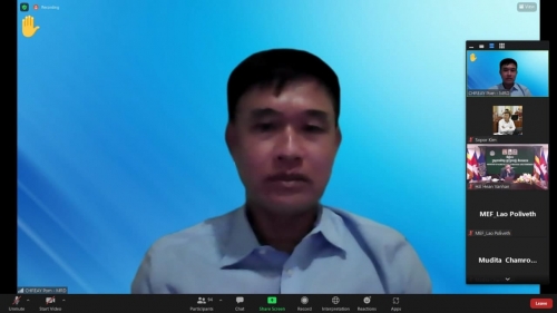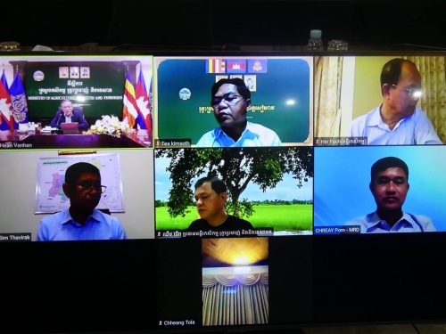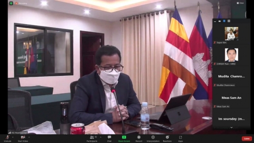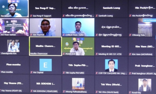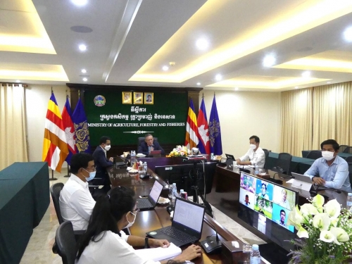Under the Cambodia Agricultural Sector Diversification Project (CASDP), the Wrap up meeting (Virtual) chaired by H.E Hean Vannhan, Secretary of State of the Ministry of Agriculture, Forestry and Fisheries and Chairperson of the project orientation committee are organized at the Ministry of Agriculture, Forestry, and Fisheries and Mrs. Chamroeun Mudita and Ms. Sandra Broka, Co-Task Team Leaders. The purposes of the meeting are to review the Aide Memoire of the fourth implementation support mission (ISM) of the World Bank focus project progress, the faced challenges, and provide the direction and recommendations to the next project implementation. The participants in the Wrap up meeting were including representatives from the Ministry of Agriculture, Forestry and Fisheries, Ministry of Economy and Finance, Ministry of Water Resources and Meteorology, Ministry of Rural Development, World Bank and Project Director of the Cambodian Agricultural Diversification Sector Project and colleagues from the Project Implementation Unit of the Ministry of Agriculture, Forestry and Fisheries, Ministry of Economy and Finance, Ministry of Rural Development, Ministry of Water Resources and Meteorology Provincial Department of Forestry and Fisheries and project consultants from the above four ministries and TSP experts, the total 98 participants.