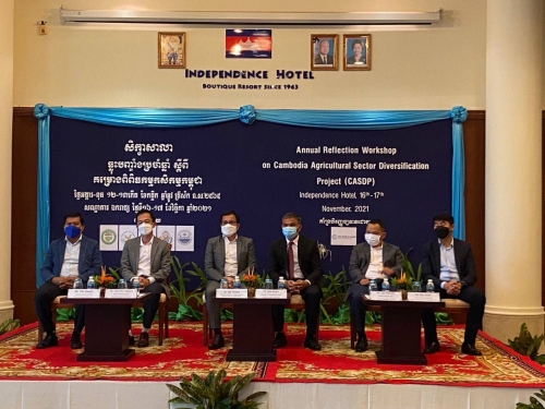 នាថ្ងៃអង្គារ-ពុធ ១២-១៣កើត ខែកត្តិក ឆ្នាំឆ្លូវ ព.ស២៥៦៥ ត្រូវនឹងថ្ងៃទី១៦-១៧ ខែវិច្ឆិកា ឆ្នាំ២០២១ ថ្នាក់ដឹកនាំ និងមន្រ្តីអនុវត្តគម្រោងពិពិធកម្មកសិកម្មកម្ពុជានៃក្រសួងកសិកម្ម រុក្ខាប្រមាញ់ និងនេសាទ បានចូលរួមសិក្ខាសាលាឆ្លុះបញ្ចាំងប្រចាំឆ្នាំស្តីពី គម្រោងពិពិធកម្មកសិកម្មកម្ពុជា ដែលរៀបចំឡើងដោយភ្នាក់ងារអនុវត្តគម្រោងពិពិធកម្មកសិកម្មកម្ពុជានៃក្រសួងសេដ្ឋកិច្ចនិងហិរញ្ញវត្ថុ MEF-PIU នៅសណ្ឋាគារឯករាជ្យ ខេត្តព្រះសីហនុ ដែលមានការចូលរួមផងដែរពីតំណាងភ្នាក់ងារអនុវត្តគម្រោងនៃក្រសួងអភិវឌ្ឍន៍ជនបទ ក្រុមការងារអ្នកផ្តល់សេវាបច្ចេកទេស (TSP) និងតំណាងគ្រឹះស្ថានហិរញ្ញវត្ថុដែលចូលរួមអនុវត្តគម្រោង (PFI)។ សិក្ខាសាលានេះមានគោលបំណងឆ្លុះបញ្ចាំង និងចែករំលែកនូវបទពិសោធន៍នៃការអនុវត្តគម្រោង ក៏ដូចជាកិច្ចប្រឈមផ្សេងៗ ដើម្បីយកមកពិភាក្សា ផ្តល់យោបល់ និងរកនូវដំណោះស្រាយសមស្រមសម្រាប់យកទៅអនុវត្តឱ្យមានប្រសិទ្ធភាព។