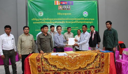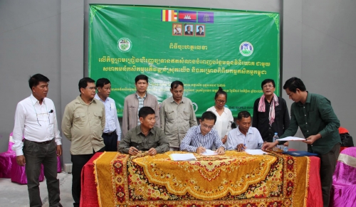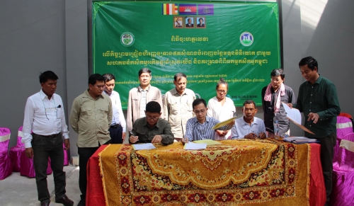 លោក ហុក គឹមធួន អនុប្រធាននាយកដ្ឋានផែនការ និងស្ថិតិនៃក្រសួងកសិកម្ម រុក្ខាប្រមាញ់ និងនេសាទ និងជាប្រធានគម្រោងពិពិធកម្មកសិកម្មកម្ពុជា (CASDP) និងលោក ស៊ឹម ថាវីរ: ប្រធានមន្ទីរកសិកម្ម រុក្ខាប្រមាញ់ និងនេសាទខេត្តកំពង់ចាម និងលោក លោក មាជ សារូ ប្រធានក្រុមប្រឹក្សាភិបាលសហគមន៍កសិកម្មអភវិឌ្ឍន៍ស្រុកយើង និងអាជ្ញាធរមូលដ្ឋាន បានចុះហត្ថលេខារួមគ្នានាឱកាសនោះ។ ពិធីចុះហត្ថលេខាខាងលើបានរៀបចំឡើងនៅសហគមន៍កសិកម្មអភិវឌ្ឍន៍ស្រុកយើង ភូមិត្រពាំងត្នោត ឃុំសូរ្យសែន ស្រុកព្រៃឈរ ខេត្តកំពង់ចាម។