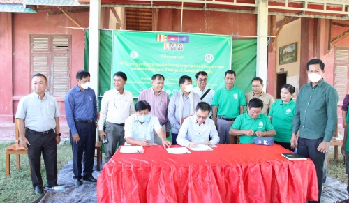លោក ហុក គឹមធួន អនុប្រធាននាយកដ្ឋានផែនការ និងស្ថិតិនៃក្រសួងកសិកម្ម រុក្ខាប្រមាញ់ និងនេសាទ និងជាប្រធាន គម្រោងពិពិធកម្មកសិកម្មកម្ពុជា (CASDP) និងលោក ឈៀង តុលា ប្រធានមន្ទីរកសិកម្ម រុក្ខាប្រមាញ់ និងនេសាទ ខេត្តកំពង់ស្ពឺ លោក ស្វាយ សារុណ អភិបាលរងស្រុកសំរោងទង និងលោកឡេង អ៊ួង ប្រធានក្រុមប្រឹក្សាភិបាលសហគមន៍កសិកម្មអមតៈ និងអាជ្ញាធរមូលដ្ឋាន បានចុះហត្ថលេខារួមគ្នានាឱកាសនោះ។ ពិធីចុះហត្ថលេខាខាងលើបានរៀបចំឡើងនៅសាលាឃុំស្គុះ ស្រុកសំរោងទង ខេត្តកំពង់ស្ពឺ។