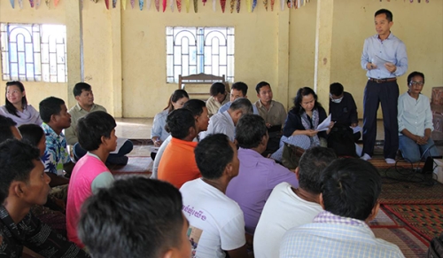 On October 20, 2023, the team of Cambodia Agricultural Sector Diversification Project (CASDP), the Ministry of Agriculture, Forestry and Fisheries (MAFF) met with representatives from Teuk Hout Meanchey Kdey Sangkheum Agriculture Cooperative to understand the financial situation and confirm their need and budget contribution to receive the matching grant of a 40% after the Advisory and Endorsement Committee has endorsed the diversification plan for the improvement of garlic leaves production. The meeting was held at the cooperative's office in Teuk Hout commune, Rolea Pa'ea district, Kampong Chnang province attended the meeting, including Mr. Hok Kimthourn, Deputy Director of the Planning and Statistics Department, MAFF, and CASDP Manager, Mrs. Chamroeun Mudita, WB-CASDP Team leader and her colleagues, representatives Implementing Agencies such as Ministry of Economic and Finance, Ministry of Water Resources and Meteorology, Ministry of Rural Development, PDAFF, project staff, and cooperative members.