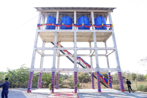 ការសាងសង់បានចាប់ផ្តើមនៅដើមខែកក្កដា ឆ្នាំ ២០២៤ ហើយត្រូវបានបញ្ចប់ដោយជោគជ័យនៅចុងខែមករា ឆ្នាំ ២០២៥។ ប្រព័ន្ធស្រោចស្រពក្រៅកសិដ្ឋានមានអណ្តូងទឹកក្រោមដីជម្រៅ ១១៧ ម៉ែត្រ បំពាក់ដោយម៉ាស៊ីនបូមទឹកដើរដោយថាមពលពន្លឺព្រះអាទិត្យចំនួន ២ ដែលអណ្តូងនីមួយៗអាចផ្គត់ផ្គង់ទឹកពី៦ ទៅ ៧ ម៉ែត្រគូបក្នុងមួយម៉ោង។ ក្រៅពីនេះមានសម្ភារៈមួយចំនួនទៀតដូចជា ប៉មទឹកបេតុង ដែលអាចផ្ទុកធុងចំនួន ៤ មានសមត្ថភាពផ្ទុកសរុប ៤០ ម៉ែត្រគូប (១០ ម៉ែត្រគូបក្នុងមួយធុង) និងបណ្តាញចែកចាយទឹកប្រវែង ៣00 ម៉ែត្រជុំវិញស្ថានីយ៍។