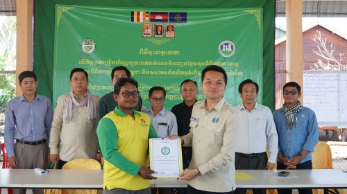 កិច្ចព្រមព្រៀងនេះធ្វើឡើងនៅភូមិក្វាន់ទៀង ឃុំសាលាវិស័យ ស្រុកប្រាសាទបល្ល័ង្ក ខេត្តកំពង់ធំ និងចុះហត្ថលេខាដោយ ឯកឧត្តម ឃឹម ហ្វីណង់ នាយកគម្រោង CASDP និងជាអនុរដ្ឋលេខាធិការក្រសួងកសិកម្ម រុក្ខាប្រមាញ់ និងនេសាទ រួមជាមួយតំណាងសហគមន៍កសិកម្មទំនើបសាលាវិស័យកំពង់ធំ។ អញ្ជើញចូលរួមក្នុងកិច្ចព្រមព្រៀងនេះរួមមាន សហការី តំណាងអង្គភាពអនុវត្តគម្រោង មកពីក្រសួងសេដ្ឋកិច្ច និងហិរញ្ញវត្ថុ ក្រសួងអភិវឌ្ឍន៍ជនបទ ក្រសួងធនធានទឹក និងឧតុនិយម សមាជិកសហគមន៍កសិកម្ម និងតំណាងមន្ទីរកសិកម្មខេត្តកំពង់ធំ និងអាជ្ញាធរមូលដ្ឋាន បានចូលរួមជាសាក្សី។